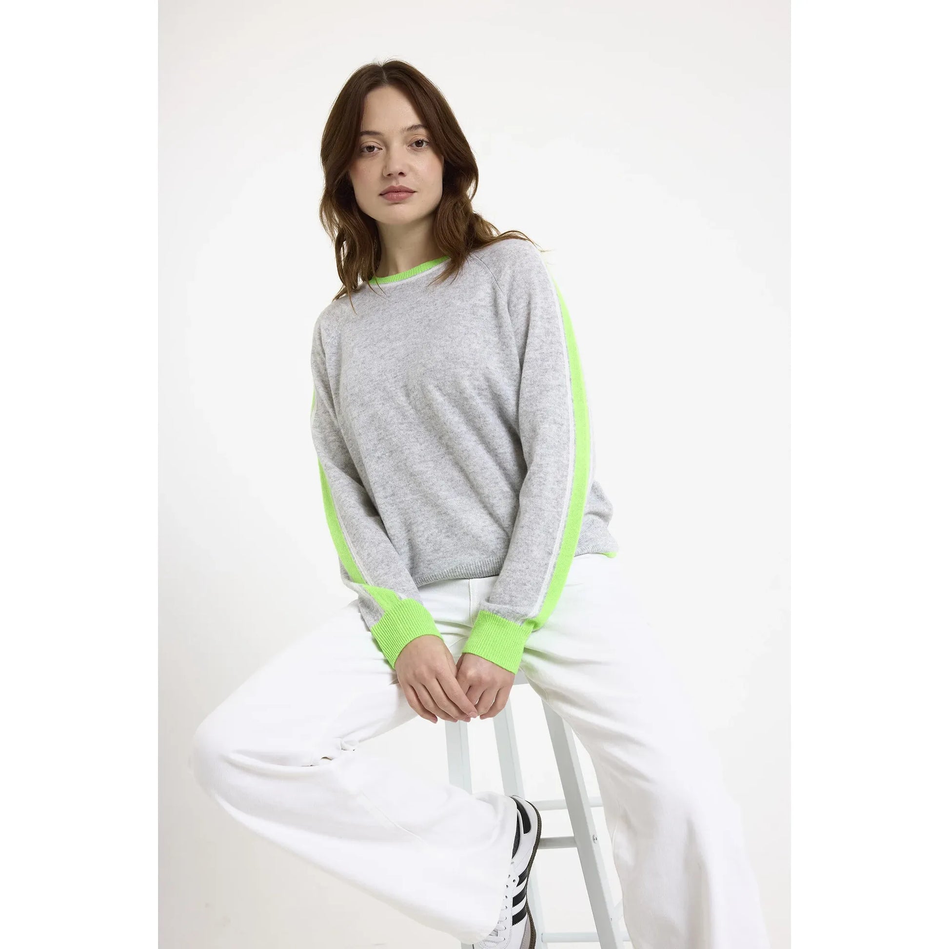 Brodie 100% Cashmere Striped Sleeve Mini Sweater in Super Grey