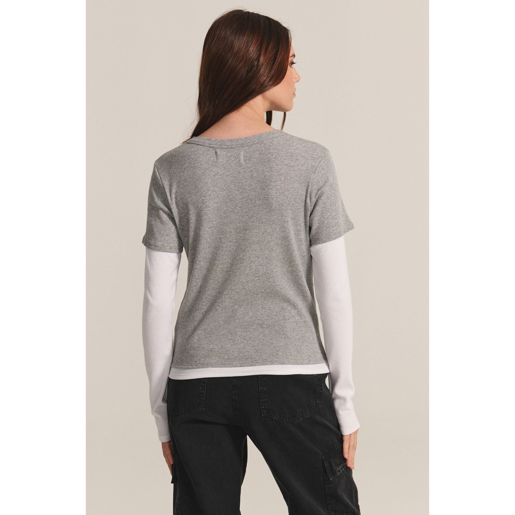 Crafted from soft modal rib, this tee features contrasting sleeves and hem for an on-trend double-layered look. Designed with a classic crew neckline and comfortable stretch, it’s a versatile staple that adds subtle dimension to your everyday rotation.